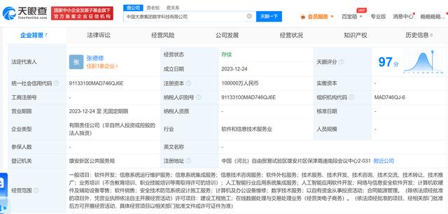 近日,中國大唐集團(tuán)數(shù)字科技有限公司成立,法定代表人為張德修,注冊資本10億人民幣,經(jīng)營范圍含人工智能行業(yè)應(yīng)用系統(tǒng)集成服務(wù)、人工智能應(yīng)用軟件開發(fā)、網(wǎng)絡(luò)與信息安全軟件開發(fā)、數(shù)字技術(shù)服務(wù)、以自有資金從事投資活動等。