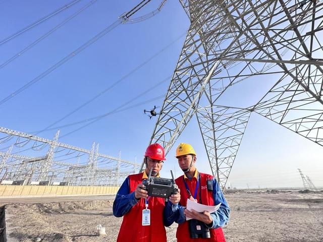 圖為新疆送變電公司員工在750千伏車楚一線001號開展無人機(jī)自主巡檢(張志文 攝)