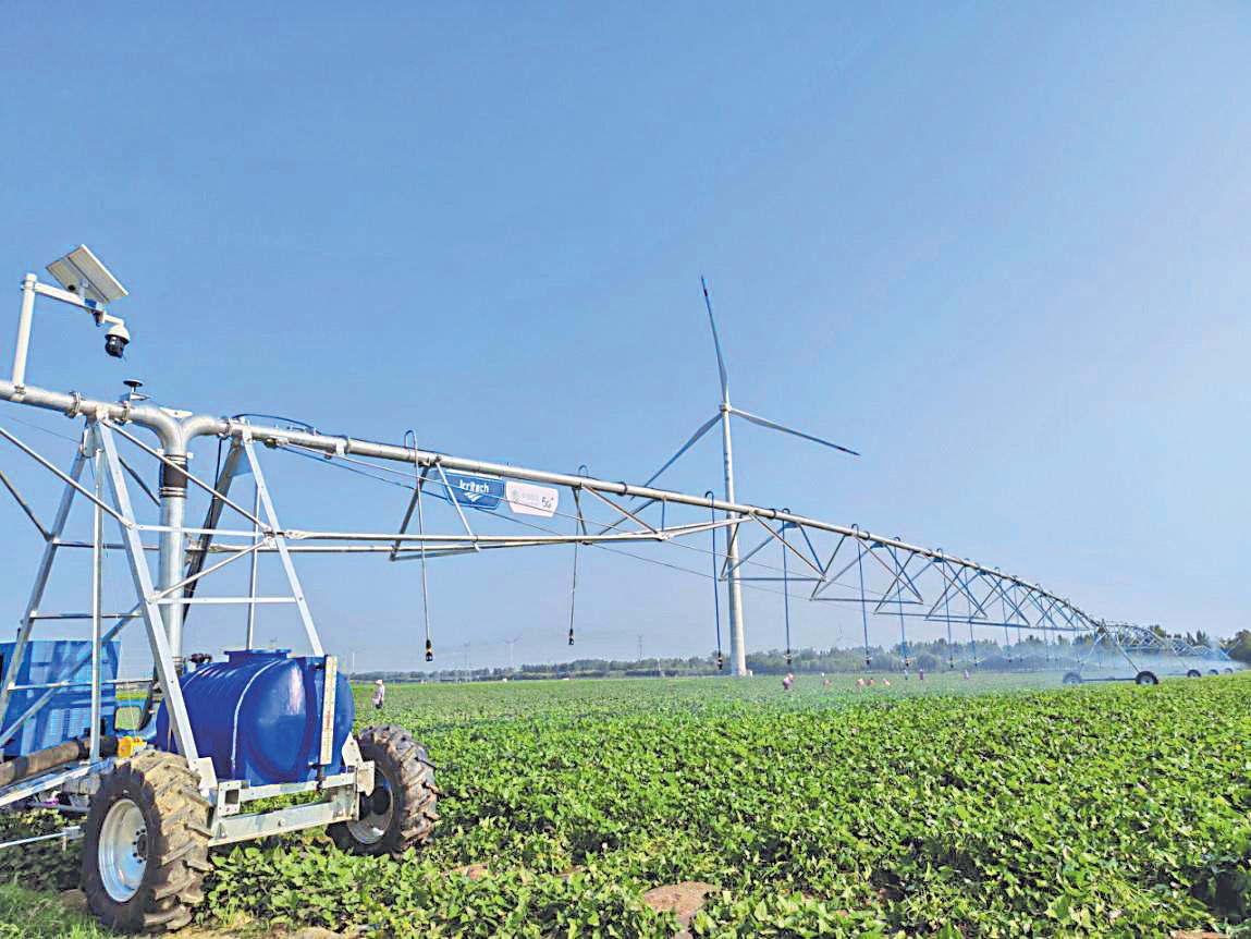 在延津縣,萬畝高標(biāo)準(zhǔn)農(nóng)田里的夏玉米已進(jìn)入灌漿期,該階段澆水增肥是增加產(chǎn)量、保障豐產(chǎn)豐收的關(guān)鍵。在塔鋪街道大柳樹村的高標(biāo)準(zhǔn)農(nóng)田里,幾十米寬的大型平移式噴灌機(jī)似巨鳥展翅,在田間緩緩移動(dòng),“羽翼”下的幾十個(gè)噴頭噴出均勻的“水霧墻”,滋潤著莊稼,讓玉米“吃飽喝足”。中國移動(dòng)5G水肥一體化智能灌溉技術(shù)將灌溉和施肥兩個(gè)農(nóng)業(yè)生產(chǎn)過程融合在一起,不僅實(shí)現(xiàn)了澆地向澆苗轉(zhuǎn)變,還能將水連同肥料直接輸送到玉米地里,讓玉米“渴”了就“喝”、“餓”了就“吃”,實(shí)現(xiàn)了對(duì)農(nóng)田水分和養(yǎng)分的綜合管理。
