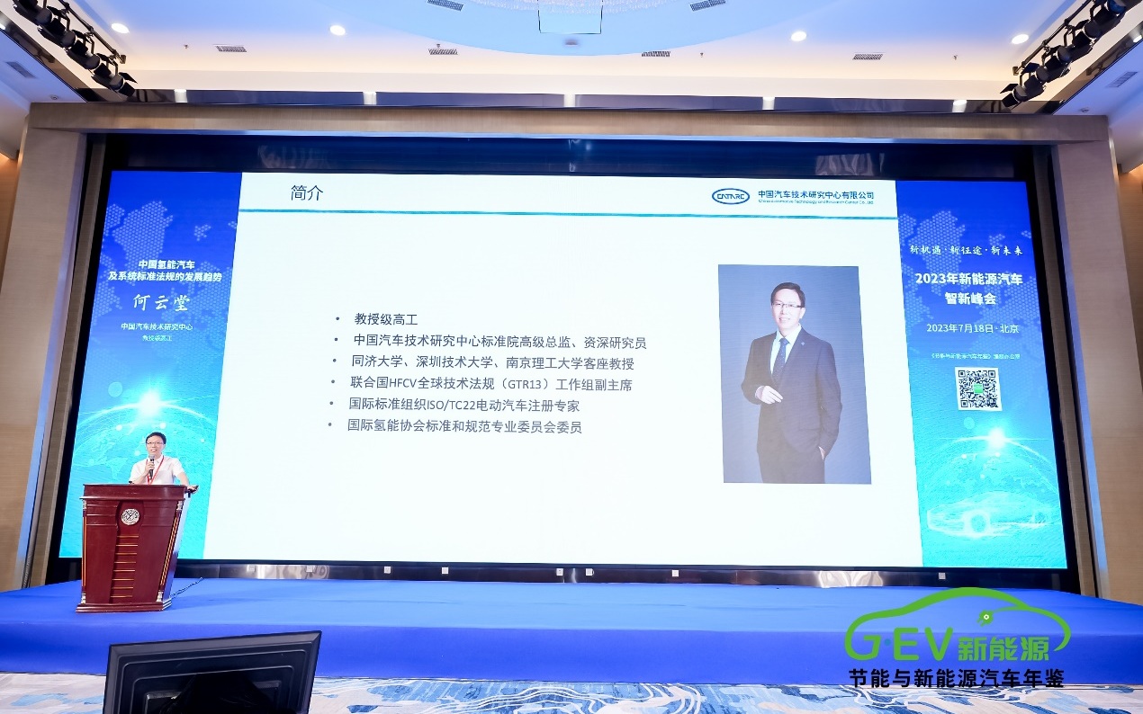 峰會(huì)現(xiàn)場,中國汽車技術(shù)研究中心有限公司標(biāo)準(zhǔn)院高級(jí)總監(jiān)、資深研究員何云堂發(fā)表了《中國氫能汽車及系統(tǒng)標(biāo)準(zhǔn)法規(guī)的發(fā)展趨勢》主旨報(bào)告。該報(bào)告分享了中國燃料電池汽車標(biāo)準(zhǔn)和聯(lián)合國燃料電池汽車全球技術(shù)法規(guī)等內(nèi)容,并對重點(diǎn)標(biāo)準(zhǔn)進(jìn)行了解讀。