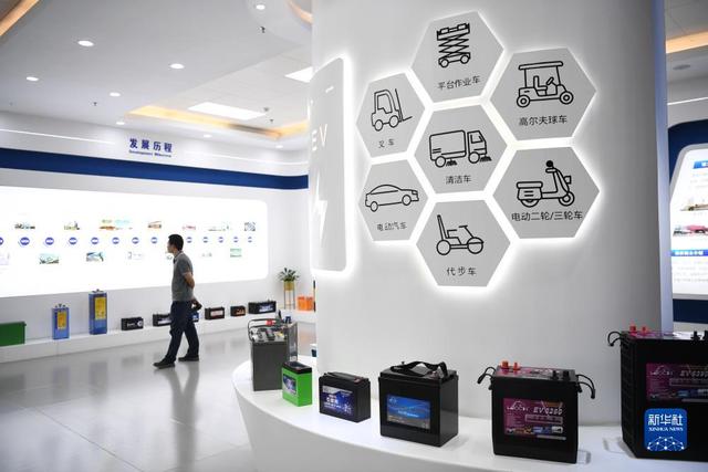 10月9日,參觀者在廣東肇慶理士電源技術(shù)有限公司觀看各種類(lèi)型的電池產(chǎn)品。