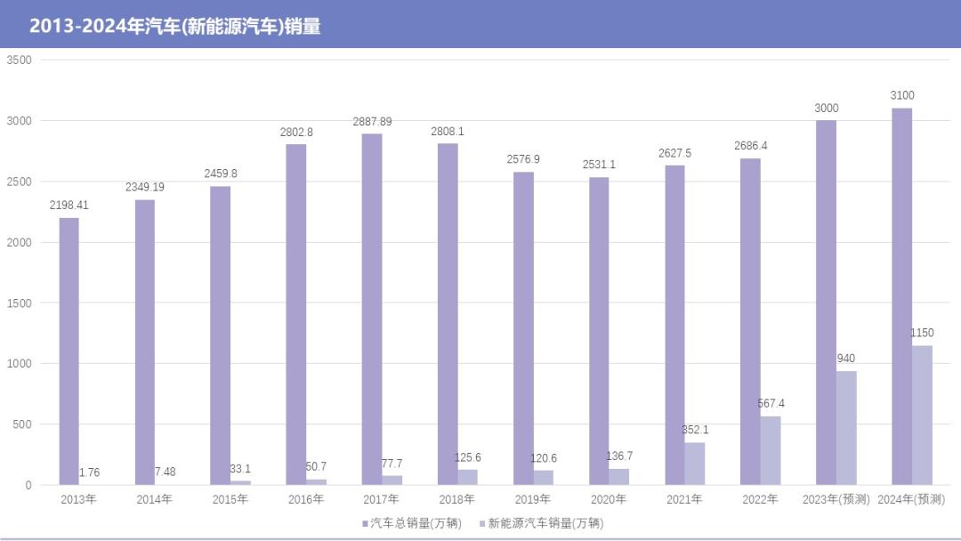 中國(guó)汽車(chē)工業(yè)協(xié)會(huì)預(yù)計(jì),2024年,汽車(chē)整體銷(xiāo)量將在3100萬(wàn)輛左右,新能源乘用車(chē)市占率將達(dá)到43%。
