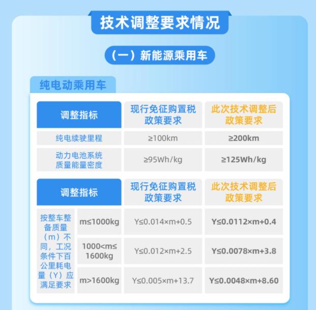 2023年12月11日,工信部、財(cái)政部、稅務(wù)總局三部門(mén)聯(lián)合發(fā)布《關(guān)于調(diào)整減免車(chē)輛購(gòu)置稅新能源汽車(chē)產(chǎn)品技術(shù)要求的公告》(下稱12月最新公告),更新了享受減免車(chē)輛購(gòu)置稅的新能源汽車(chē)產(chǎn)品的技術(shù)要求,提升了整車(chē)能耗、續(xù)駛里程等多項(xiàng)指標(biāo),明確了換電模式車(chē)型的相關(guān)要求。