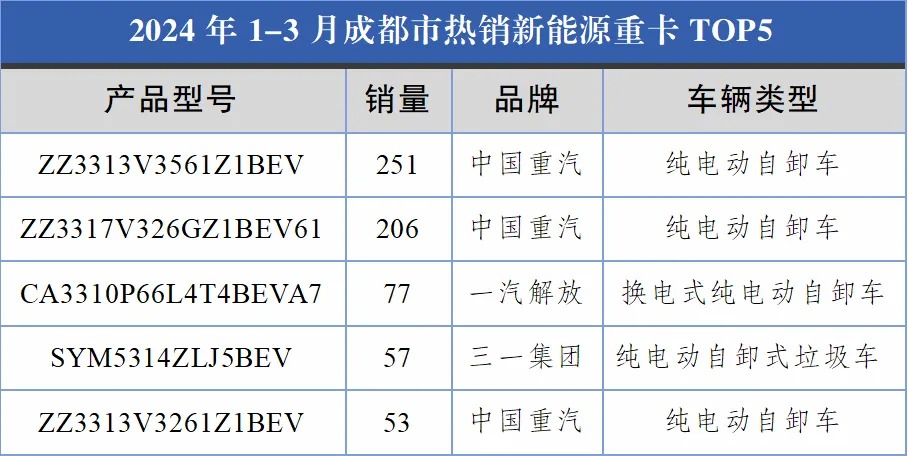 一季度成都新能源重卡銷售數(shù)量全國(guó)第一