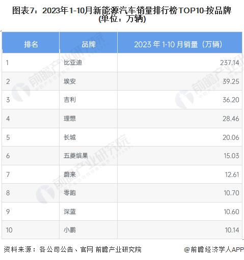 從銷量方面來看,2023年1至10月,我國新能源汽車銷量第一名的品牌為比亞迪,以237.14萬輛遙遙領(lǐng)先全行業(yè)。第二名為廣汽埃安,銷量為39.25萬輛;第三名為吉利汽車,銷量為36.20萬輛。造車新勢力三大車企中,理想排名第四,銷量為28.46萬萬輛,小鵬排名第十,銷量為10.14萬輛,蔚來排名七,銷量為12.61萬輛??傮w來看,2023年1至10月,傳統(tǒng)車企新能源汽車銷量總體好于造車新勢力。