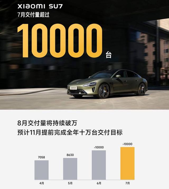 小米7月的交付量超10,000輛,今年累計(jì)交付量已經(jīng)超30,000輛。官方預(yù)測,其8月的交付量將持續(xù)破萬,預(yù)計(jì)在11月提前完成全年十萬輛的交付目標(biāo)。