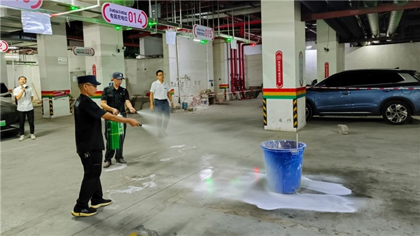 ▲ 學(xué)府悅園、空港樂(lè)園的物業(yè)工作人員正在進(jìn)行消防演練