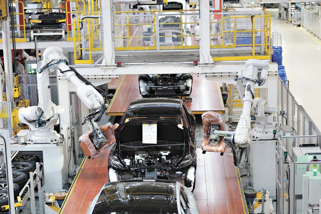 在總裝車間,汽車會(huì)經(jīng)歷200多個(gè)加工工位(站點(diǎn)),其中很多站點(diǎn)都實(shí)現(xiàn)了無(wú)人化、全機(jī)器人操作。