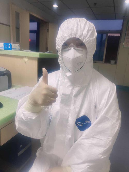 1月28日,負(fù)壓病房因人手不夠,在全院范圍緊急招募志愿者。負(fù)壓病房,需要“全副武裝”,每天和疑似病人近距離接觸,感染風(fēng)險(xiǎn)極大。但受老公經(jīng)常參加搶險(xiǎn)救援戰(zhàn)斗的影響,她多次向領(lǐng)導(dǎo)提出申請(qǐng),并遞交了入黨志愿書(shū),終于獲批“逆行”進(jìn)入最危險(xiǎn)的負(fù)壓病房。接下來(lái)的20多天,她每天都要陪著10幾個(gè)病人,認(rèn)真細(xì)致的檢查防護(hù)、登記、測(cè)體溫等等,但確診檢測(cè)是個(gè)比較漫長(zhǎng)的過(guò)程,有的病人難免產(chǎn)生焦慮、急躁的情緒,她總是像對(duì)家人一樣做好撫慰,幫助他們共克時(shí)艱。20多天來(lái),她以院為家,克服了各種工作和生活困難,比如在多重防護(hù)服下行動(dòng)不便、呼吸不暢、口干舌燥,累了就倚著墻蹲會(huì),困了就靠著椅背瞇會(huì)??傊瓦@樣神秘的消失在家人的視線中,有時(shí)連報(bào)個(gè)平安的電話都沒(méi)空打。