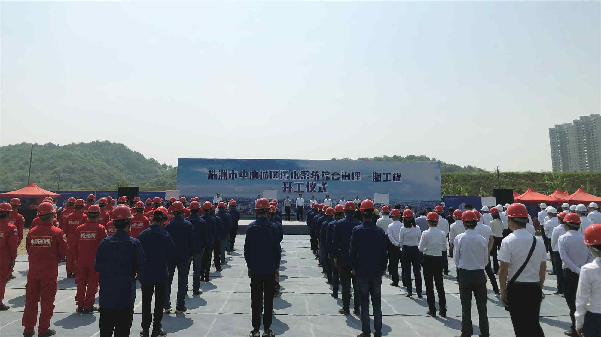 湖南省、株洲市有關(guān)領(lǐng)導(dǎo),長江生態(tài)環(huán)保集團(tuán)及各施工單位出席開工儀式。開工儀式上,安能一局各類特種裝備,參建人員嚴(yán)謹(jǐn)?shù)淖黠L(fēng)、良好的精神風(fēng)貌,贏得了現(xiàn)場嘉賓的連連駐足和點(diǎn)贊。