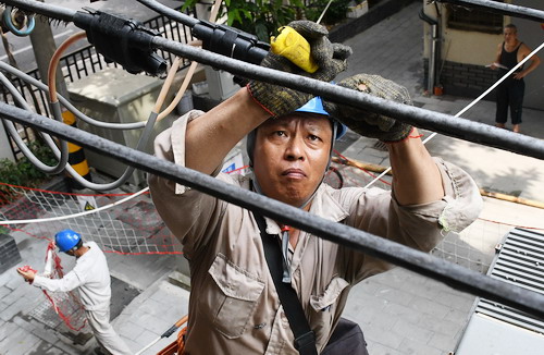 本網(wǎng)訊 9月3日,國網(wǎng)福州供電公司施工人員在福州市臺江區(qū)新興小區(qū)對低壓線路進(jìn)行纜化改造,有效提高該小區(qū)供電可靠性。新興小區(qū)配網(wǎng)改造也是該公司進(jìn)行老舊小區(qū)配電設(shè)施改造的一個縮影。