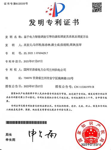 8月1日,國網(wǎng)蘭州供電公司供電服務指揮中心自主研發(fā)的《基于電力智能調度引擎的虛擬調度員系統(tǒng)及調度方法》榮獲國家知識產(chǎn)權局頒發(fā)的發(fā)明專利證書。