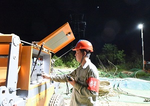 中國(guó)電力網(wǎng)訊 8月11日凌晨1時(shí),在武漢黃陂區(qū)蔡家榨街道周里河,由湖北送變電工程有限公司承建的武漢1000千伏變電站配套500千伏線路送出工程N(yùn)30-N31跨越滬蓉高鐵架線施工現(xiàn)場(chǎng), 面臨高鐵“空窗”時(shí)間極短、氣溫炎熱等困難,該公司加強(qiáng)事前籌劃和作業(yè)中安全管控督導(dǎo),運(yùn)用集控智能可視化系統(tǒng)對(duì)牽張?jiān)O(shè)備進(jìn)行操作和監(jiān)控,投入無(wú)人機(jī)空中照明系統(tǒng)等新裝備助力夜間施工,地面人員認(rèn)真展放導(dǎo)線,鐵塔上的工人一絲不茍進(jìn)行高空作業(yè),全體施工人員密切協(xié)同,打響夜間施工攻堅(jiān)戰(zhàn)。(郭暉、余幫節(jié))