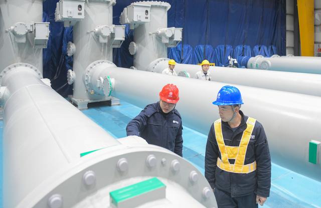 2024年1月30日,川渝特高壓交流工程1000千伏銅梁變電站,國(guó)網(wǎng)重慶市電力公司施工管理人員在1000千伏GIS移動(dòng)無(wú)塵裝配車(chē)間進(jìn)行氣室壓力檢查。記者 張錦輝 攝/視覺(jué)重慶