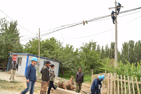 2019年8月15日傍晚,阿克蘇片區(qū)的上空陰暗無(wú)比,霎時(shí)間狂風(fēng)四起,卷積著烏云籠罩了整座城市。瞬時(shí)風(fēng)力達(dá)到9級(jí)以上,電力線路迎來(lái)了一次巨大的考驗(yàn),惡劣天氣導(dǎo)致沙井子片區(qū)多條路故障停電。陳亮接到指令,立即啟動(dòng)應(yīng)急搶修預(yù)案,連夜頂著狂風(fēng)暴雨奔赴一線,一切為的只有兩個(gè)字:搶修!經(jīng)過(guò)長(zhǎng)達(dá)15個(gè)小時(shí)晝夜不歇的高強(qiáng)度連續(xù)作業(yè),沙井子片區(qū)所有故障線路全部恢復(fù)供電!然而在這背后,是陳亮帶領(lǐng)工人們15個(gè)小時(shí)的奮戰(zhàn)!