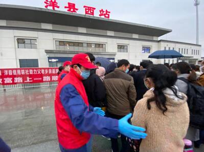 青年戰(zhàn)“疫”突擊隊(duì)攜帶一次性雨衣、純凈水等物資前往洋縣西站,參與了運(yùn)送農(nóng)民工復(fù)工返崗高鐵專(zhuān)列的志愿服務(wù)活動(dòng),不畏風(fēng)雨積極助力復(fù)工復(fù)產(chǎn)。