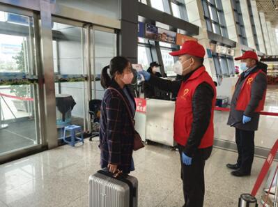 上午9時(shí),20余名志愿服務(wù)隊(duì)員頭戴“小紅帽”、身穿“紅馬甲”,在城固縣柳林機(jī)場(chǎng)主動(dòng)擔(dān)當(dāng)路口值守、旅客體溫測(cè)量、防控知識(shí)宣傳、疫情排查等工作。