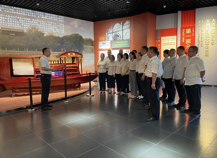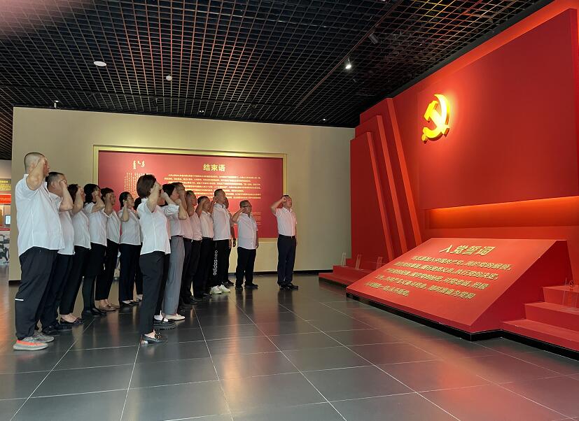 在參觀“五四運(yùn)動(dòng)和大革命時(shí)期大青山革命斗爭(zhēng)”展廳時(shí),一艘永載中國(guó)革命史冊(cè)的紅船映入眼簾,黨支部副書記田清華同志以《紅色火種 曙光普照》為題,為大家講授了一堂生動(dòng)的黨課。他提到,我們對(duì)中國(guó)共產(chǎn)黨建黨101周年的最好紀(jì)念,就是傳承和發(fā)揚(yáng)黨的光榮歷史和優(yōu)良傳統(tǒng),黨員干部們要無比珍惜“先進(jìn)基層黨組織”的榮譽(yù)稱號(hào),并將榜樣的力量轉(zhuǎn)化為砥礪奮進(jìn)、披荊斬棘的強(qiáng)大動(dòng)力,要以飽滿的熱情,高昂的姿態(tài)不斷創(chuàng)造新的業(yè)績(jī)、鑄就新的輝煌!參觀結(jié)束后,全體黨員佩戴黨徽,舉起右拳,面對(duì)莊嚴(yán)肅穆的黨旗重溫入黨誓詞?;芈曕诹恋男?,激勵(lì)鞭策著我們——用無悔鐫刻為民服務(wù)的忠誠(chéng),用責(zé)任詮釋行業(yè)擔(dān)當(dāng)?shù)氖姑?