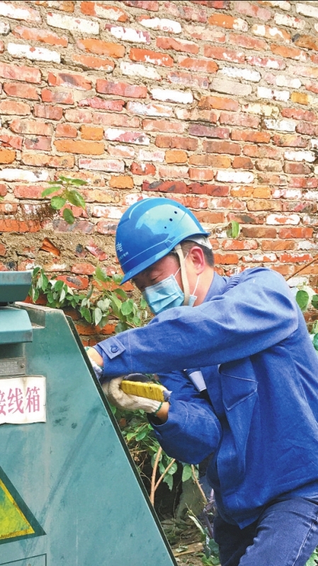 2月12日,張健炳在搶修現(xiàn)場(chǎng)拆解電纜接線箱。高挺超 攝