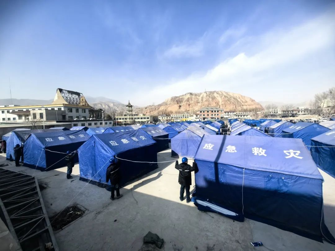 甘肅臨夏積石山縣發(fā)生地震后,公司員工為臨時安置點接線
