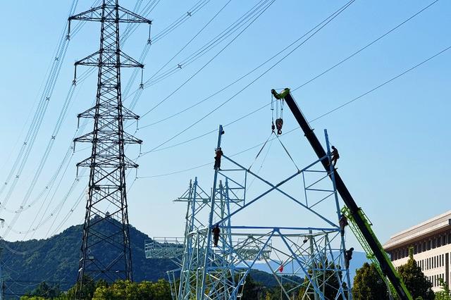 國網(wǎng)浙江杭州供電公司員工在500千伏嚴(yán)州變電站220千伏送出工程架設(shè)線路。