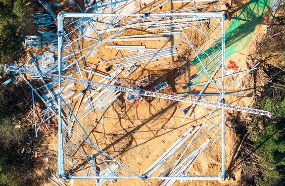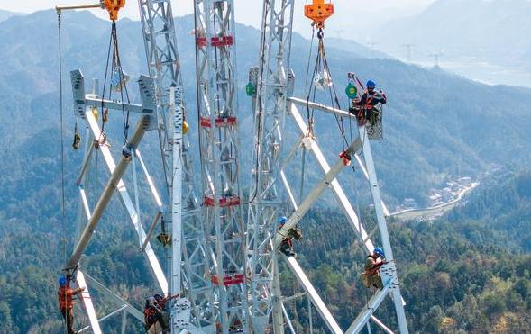 隨著新能源產(chǎn)業(yè)的快速發(fā)展,我國正在大力推進(jìn)清潔能源的利用,以應(yīng)對(duì)日益嚴(yán)峻的能源和環(huán)境問題。作為我國首個(gè)沙漠、戈壁、荒漠地區(qū)風(fēng)電光伏基地外送電的特高壓工程,“寧電入湘”特高壓線路工程被寄予了厚望。而在湖南省益陽市安化縣冷市鎮(zhèn),這一關(guān)鍵工程已經(jīng)進(jìn)入了組塔的巔峰階段,力爭盡早建成并投入運(yùn)營。