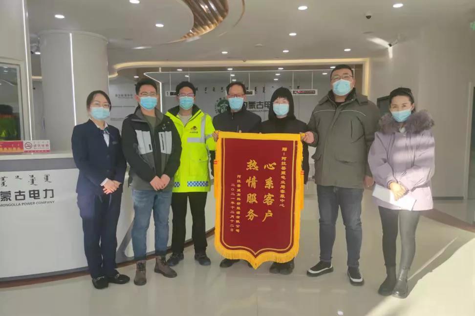 12月13日,內(nèi)蒙古高科新能源有限公司分散式風力發(fā)電項目并網(wǎng)用電負責人將一面寫有“心系客戶 熱情服務”的錦旗送到客戶服務中心。