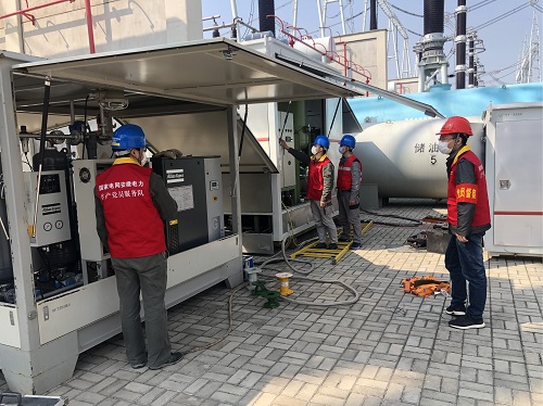 母線PT主要供輔助并網(wǎng)、繼電保護和監(jiān)測母線運行狀態(tài)使用,特高壓淮南站在初期建設(shè)時設(shè)計安裝單相PT,今年開展了1000千伏母線B、C相加裝PT工作。公司調(diào)配精干力量組成專項工作小組,提前勘察作業(yè)現(xiàn)場,工地監(jiān)督人在現(xiàn)場再三強調(diào):“作業(yè)現(xiàn)場有真空機、空氣干燥機、200噸吊車、25噸吊車和8噸吊車等多臺大型機具,相鄰間隔帶電運行,一定要提前規(guī)劃好車輛作業(yè)路線和機具、物料擺放位置。”由于工期緊張,每天現(xiàn)場作業(yè)時間長達(dá)12個小時,公司在全力做好疫情防控工作的同時,采用“工地監(jiān)督+到崗到位+全時段視頻稽查+不定期檢查”四合一的方式扎實開展現(xiàn)場安全管控工作,此次工程結(jié)束將有效降低特高壓淮南站GIS在系統(tǒng)調(diào)試和運行中空充主母線時的放電故障率。