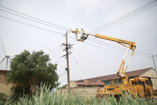 中國電力網訊  6月9日,在濰坊壽光市羊口鎮(zhèn)濕地公園附近,國網壽光市供電公司帶電作業(yè)人員對10千伏羊三線鎮(zhèn)區(qū)支線17號桿、羊四線水產城支線01號桿、羊五線57號桿進行帶電消缺,及時處理設備線夾發(fā)熱隱患,保障附近居民放心用電、清涼度夏。