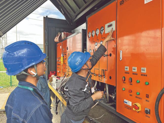 “更換過程中,為了保證舊斷路器不受潮,我們在拆下的套管及本體氣室內(nèi)及時充入高純氮氣并轉(zhuǎn)移存放。在支架及本體就位后,套管要在環(huán)境滿足條件的情況下才能進行安裝。”國網(wǎng)甘肅超高壓公司變電檢修中心變電一次檢修五班班長邵建軍說。檢修人員在保證新斷路器安裝質(zhì)量的同時,還要開展六氟化硫氣體微水及組分檢測、斷路器常規(guī)試驗和耐壓試驗等一系列工作,確保斷路器更換質(zhì)量合格。