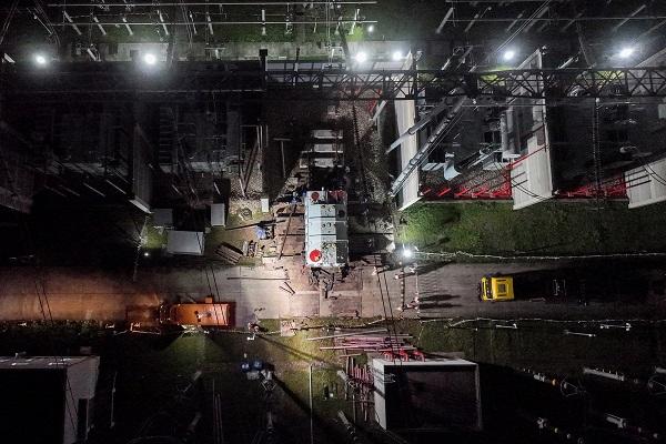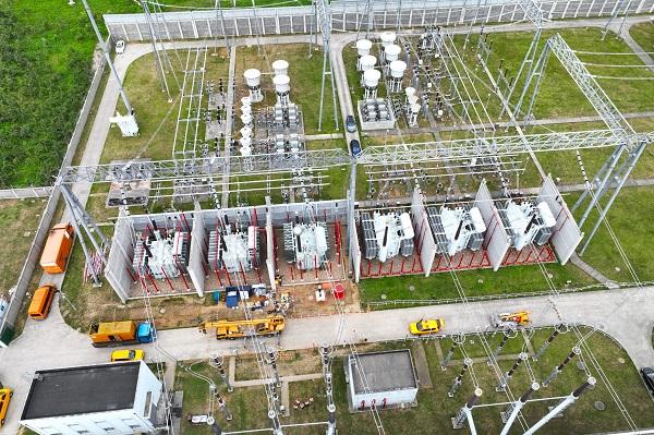 圖說:500千伏三林變電站4號主變C相本體成功完成調(diào)換并恢復供電 采訪對象供圖(下同)