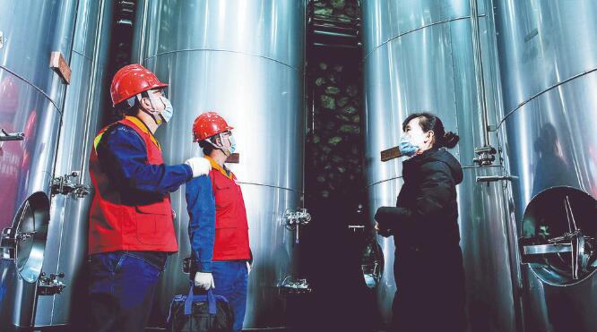 黨員突擊隊隊員在志輝源石酒莊檢查滴灌泵站設備。