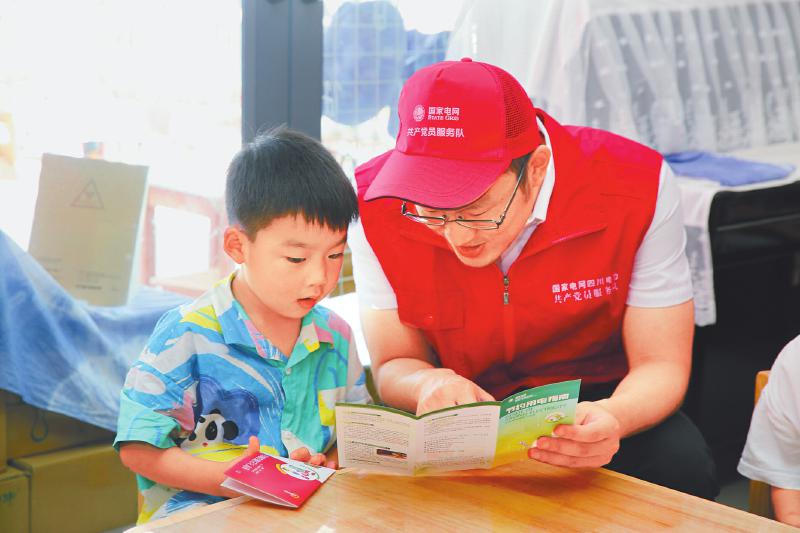 在四川廣安,國(guó)網(wǎng)四川電力共產(chǎn)黨員服務(wù)隊(duì)隊(duì)員走進(jìn)幼兒園,宣傳節(jié)約用電。王西米 攝