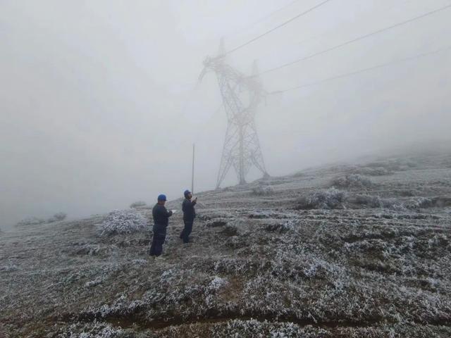 12月16日,南方電網(wǎng)工作人員在貴州畢節(jié)220千伏烏威線7號(hào)塔開(kāi)展覆冰觀測(cè),掌握輸電線路運(yùn)行情況。翟勇 攝