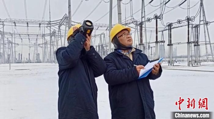 東明變值班員開展雪后測(cè)溫工作。吳善 攝
