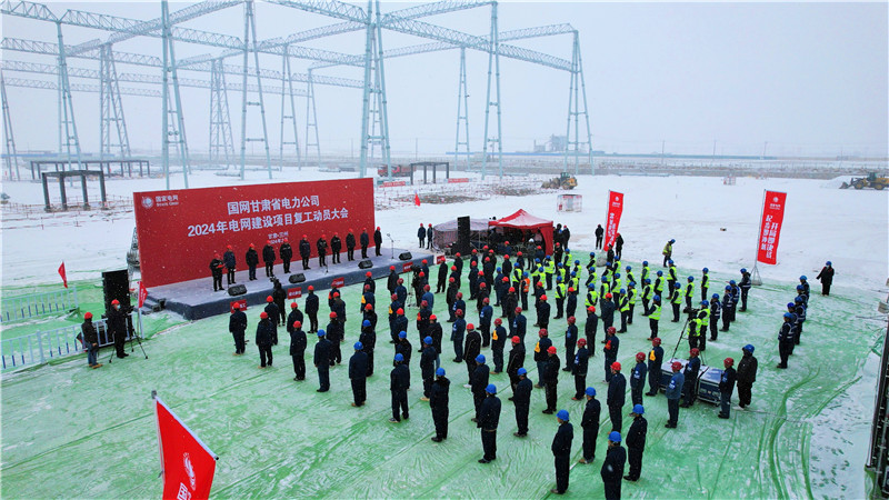 2月28日,國網(wǎng)甘肅省電力公司在秦川750千伏變電站工程現(xiàn)場召開2024年電網(wǎng)建設(shè)項目復(fù)工動員大會,標(biāo)志著甘肅電網(wǎng)建設(shè)項目全面復(fù)工。