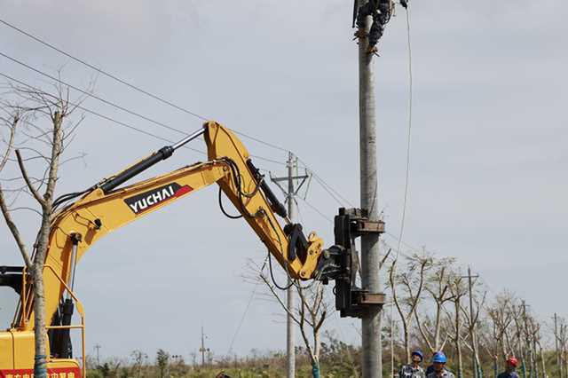 9月16日,在海南省文昌市鋪前鎮(zhèn)七嶺村七嶺2號臺區(qū)搶修復電現場,一臺身著“黃衣”、帶履帶的“龐然大物”,正揮動著靈活的機械臂,伸出它的“鉗子”,穩(wěn)穩(wěn)地抓取12米多長的電桿,一氣呵成把電桿種到桿洞中。當天,只用了3個多小時,它就完成了10基電桿的立桿作業(yè)任務。