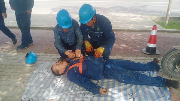 中國電力網(wǎng)訊 為了加強對有限空間作業(yè)的安全管理,更好地應對中毒、窒息、淹溺等突發(fā)受限空間安全事故發(fā)生,切實保護作業(yè)人員生命安全,6月10日,新疆兵團一師電力阿拉爾熱力分公司開展了一場有限空間應急演練活動。