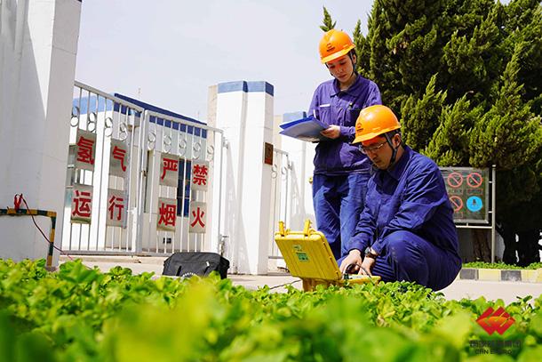 圖為員工測(cè)量制氫站防雷設(shè)施接地導(dǎo)通電阻