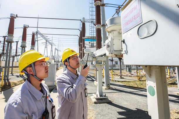 圖為運(yùn)行人員檢查升壓站開關(guān)儲(chǔ)能壓力