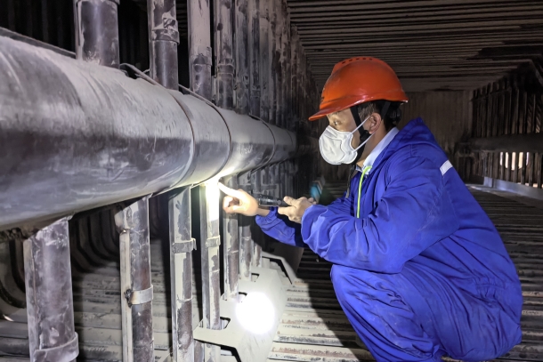 圖為專業(yè)技術(shù)骨干對鍋爐受熱面進行“把脈問診”