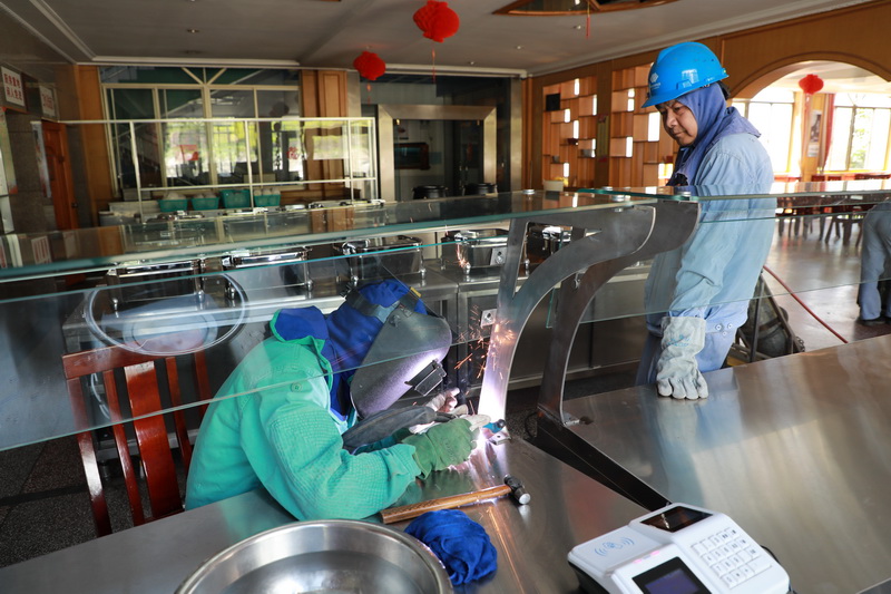 中國電力網(wǎng)訊 4月26日,天氣炎熱,而費海濤正用鋼鐵裁縫師的巧手將不銹鋼玻璃食品罩安裝完畢,使職工食堂新的炊具用品投入使用。陽宗海公司將黨史學習教育與為群眾辦實事緊密結(jié)合,以黨員為主體,引導(dǎo)廣大黨員廣泛學、深入悟,從黨史中汲取奮進力量,增強“我為群眾辦實事”的思想自覺和行動自覺。