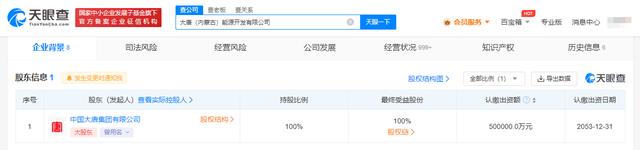 股東信息顯示,該公司由中國大唐集團有限公司全資持股。(DoNews)
