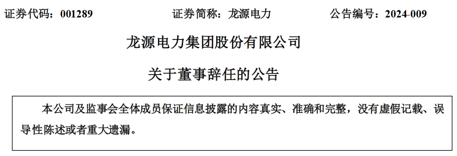 龍源電力于2月28日發(fā)布公告稱,龍源電力集團(tuán)股份有限公司(以下簡稱“公司”)第五屆董事會于 2 月 27 日收到公司非執(zhí)行董事王一國先生的書面辭任報告。