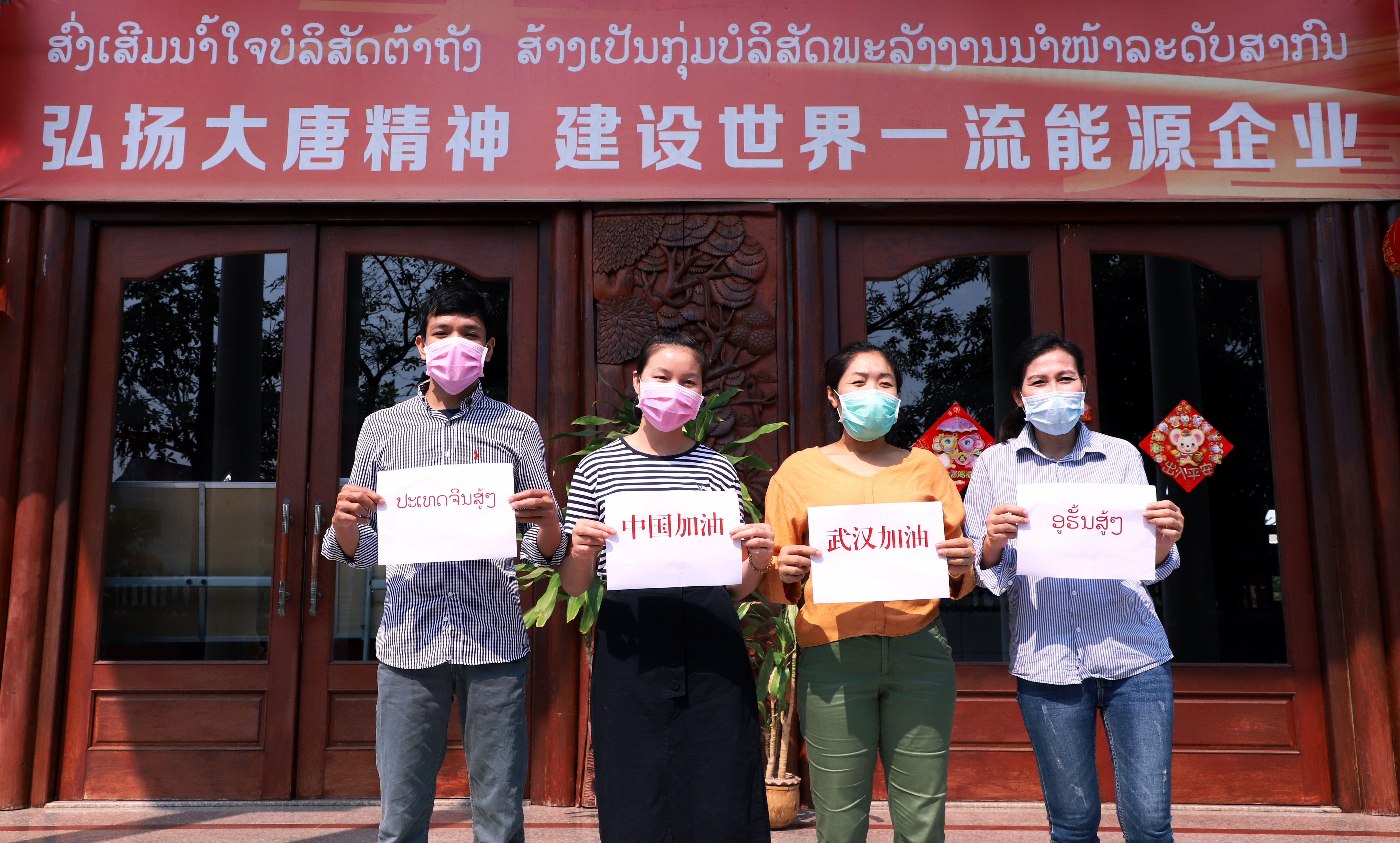 大唐老撾北本薩拉康公司老籍職工為武漢加油,為中國(guó)加油!(劉強(qiáng)/攝)