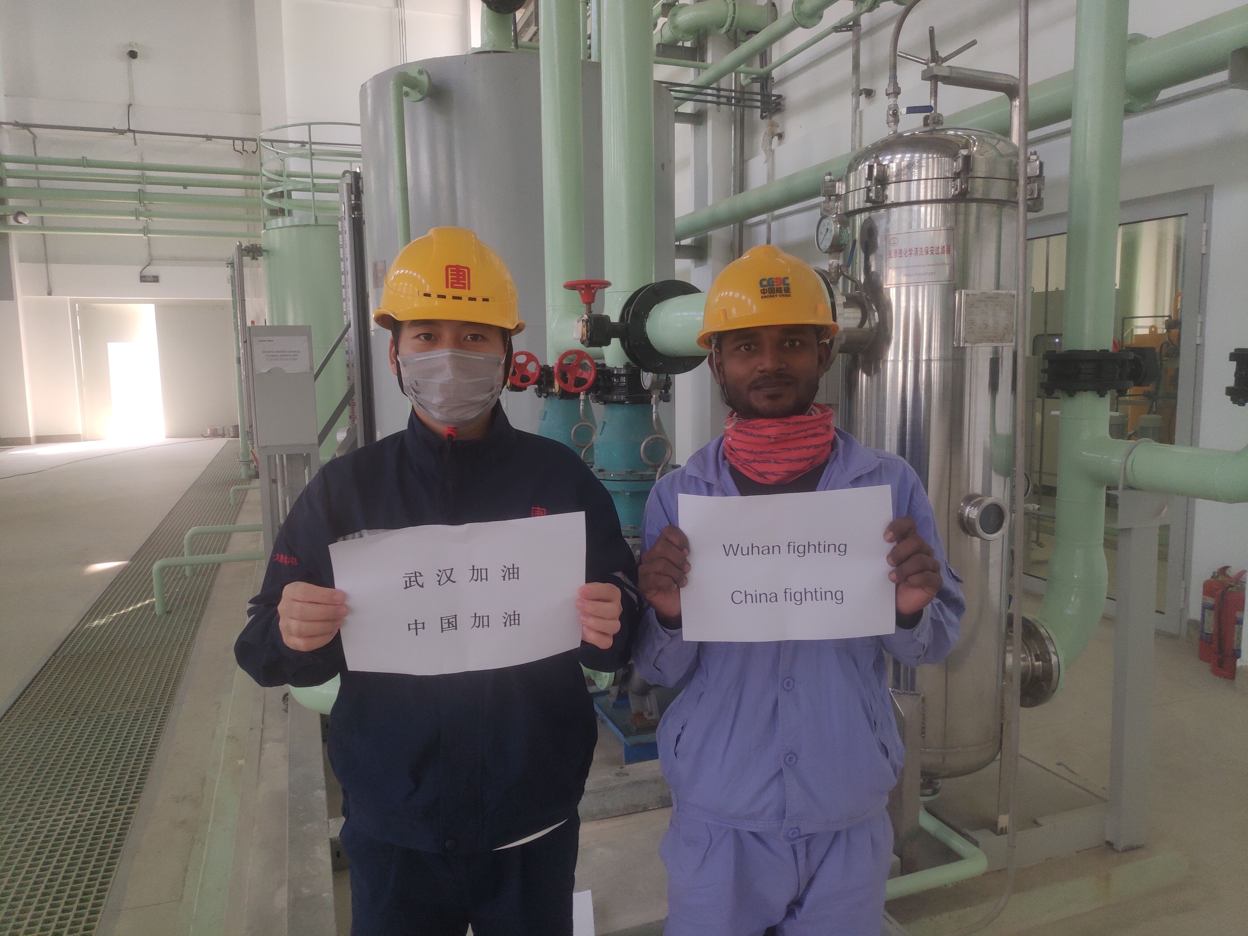 在大唐海外技術(shù)公司承擔(dān)運(yùn)維工作的孟加拉帕亞拉電站,中外職工為中國(guó)加油、為武漢加油?。鐒t廷 金洪飛/攝)