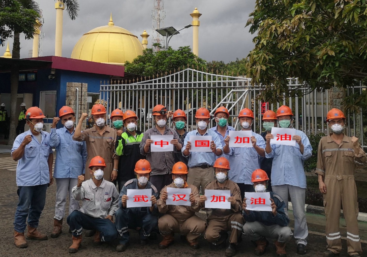 在大唐安徽發(fā)電公司承擔(dān)運(yùn)維工作的印尼芝拉扎電站,中印雙方人員共同為中國(guó)加油、為武漢加油。(朱成文/攝)