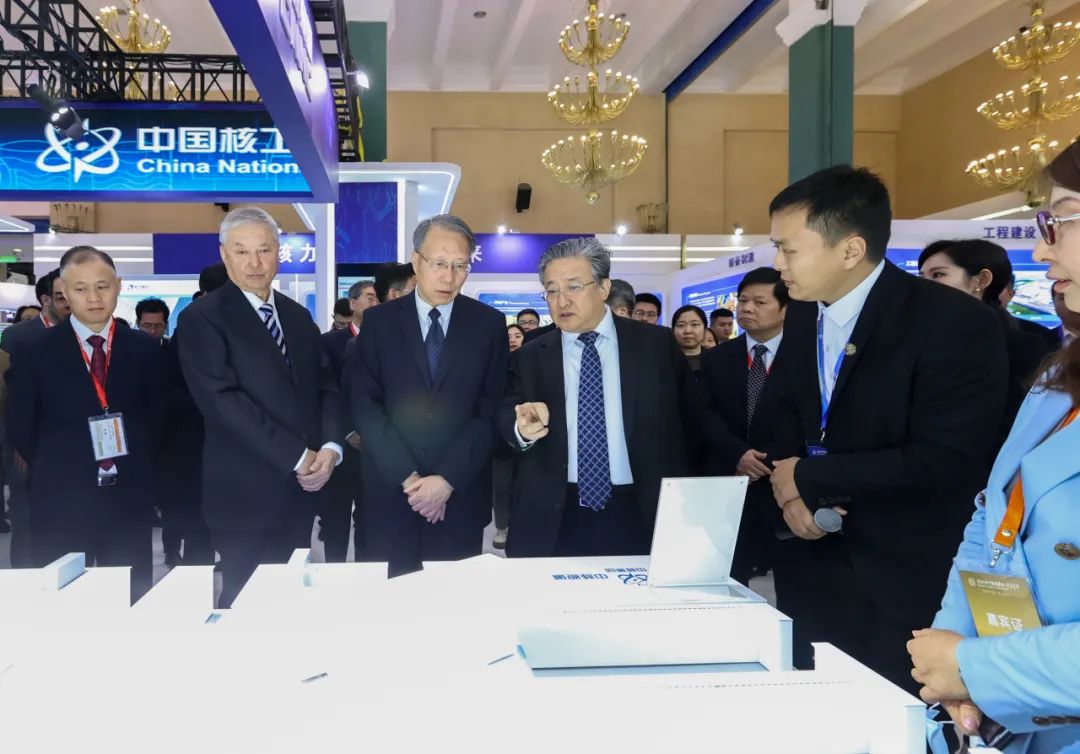 中國科學(xué)技術(shù)協(xié)會(huì)書記處書記殷皓,國家原子能機(jī)構(gòu)副主任劉敬,工業(yè)和信息化部、生態(tài)環(huán)境部(國家核安全局)、國家能源局相關(guān)司局負(fù)責(zé)人,中核集團(tuán)董事長余劍鋒,中國核學(xué)會(huì)理事長王壽君,中核集團(tuán)副總經(jīng)理馬文軍以及來自國內(nèi)外的政府官員、企業(yè)代表和專家出席開幕式,并參觀了中核集團(tuán)展臺(tái)。當(dāng)天下午,中核集團(tuán)副總經(jīng)理曹述棟出席集團(tuán)公司科研設(shè)施國際開放發(fā)布會(huì)并致辭,總會(huì)計(jì)師王學(xué)軍參觀了集團(tuán)展臺(tái)。