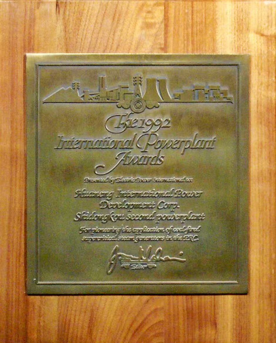 1992年10月22日,電廠榮獲美國(guó)《國(guó)際電力》雜志社評(píng)定的“國(guó)際電站獎(jiǎng)”