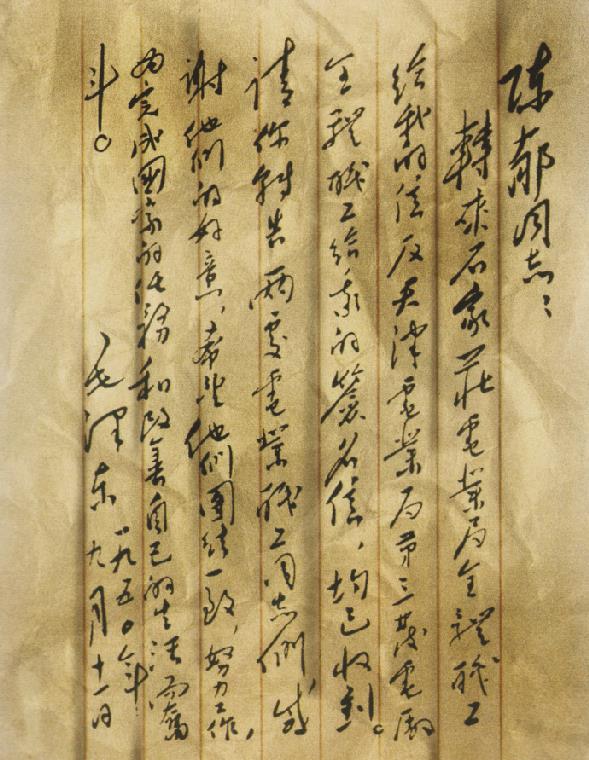 毛主席回信發(fā)表于1950年人民日?qǐng)?bào),原件作為歷史文物收藏于中央檔案館